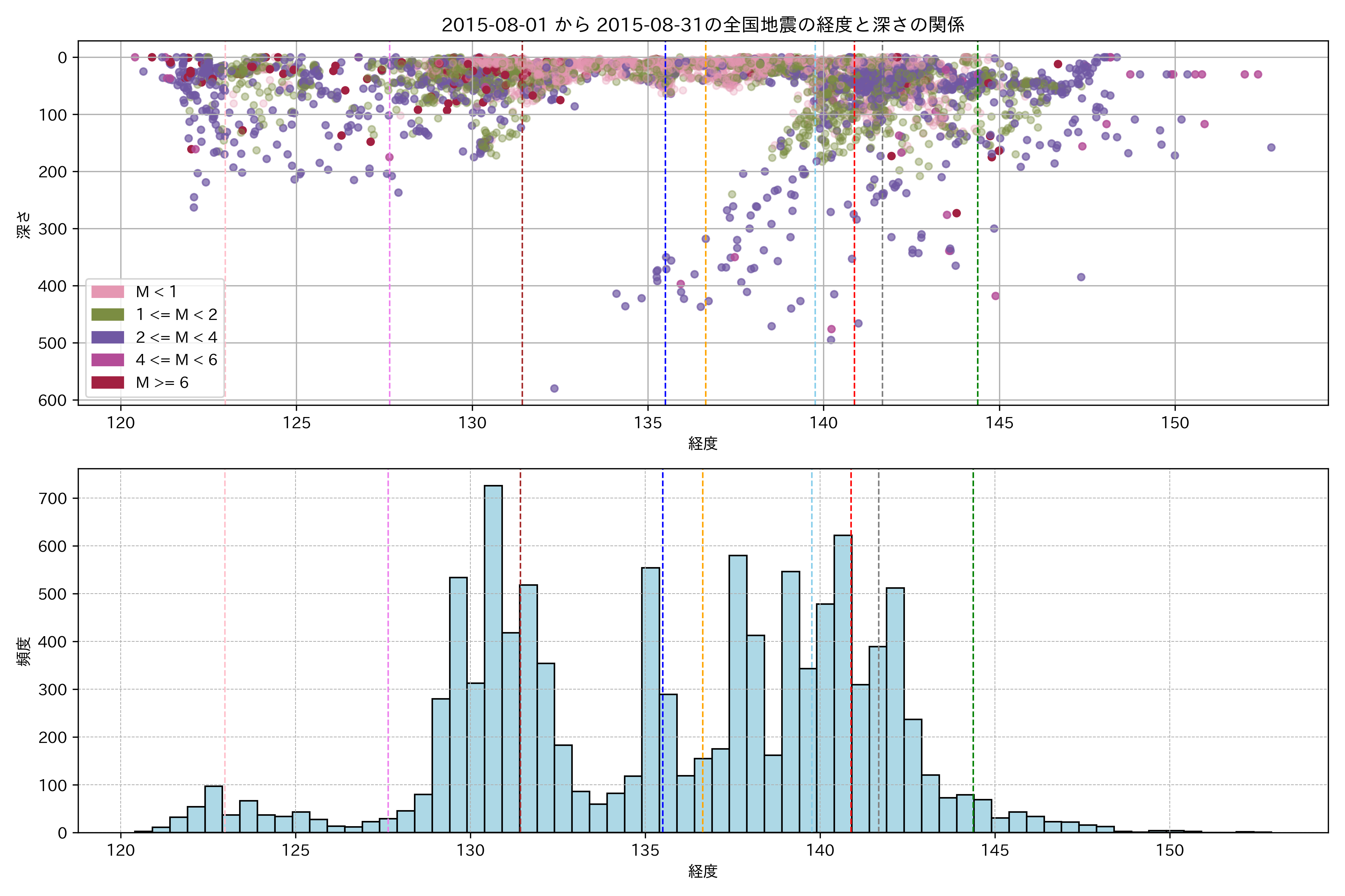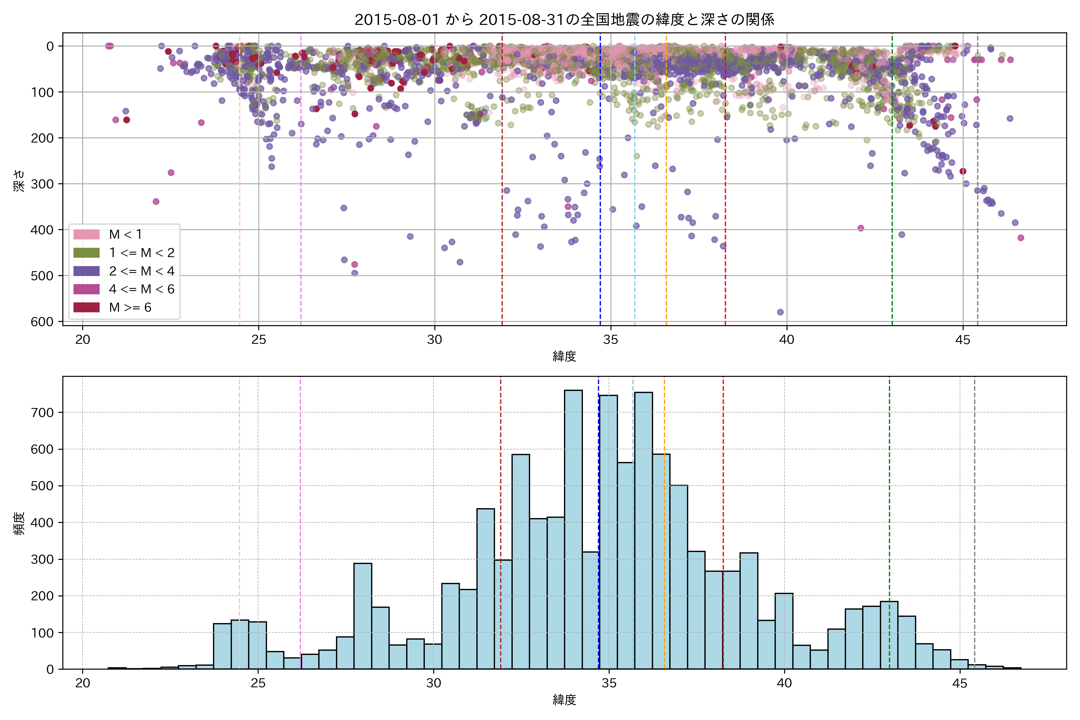 2015年8月 マグニチュード 0 以上震源マップ