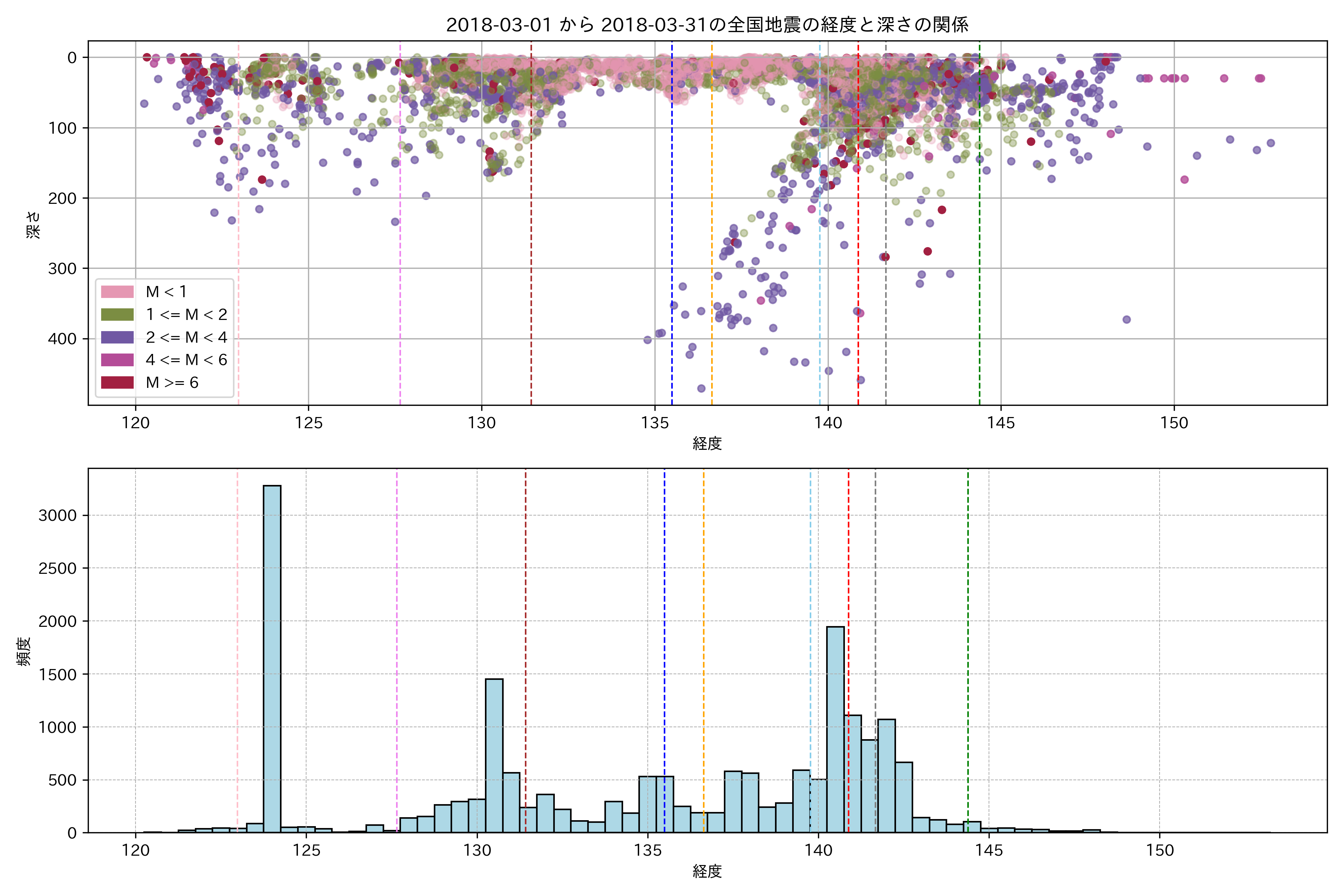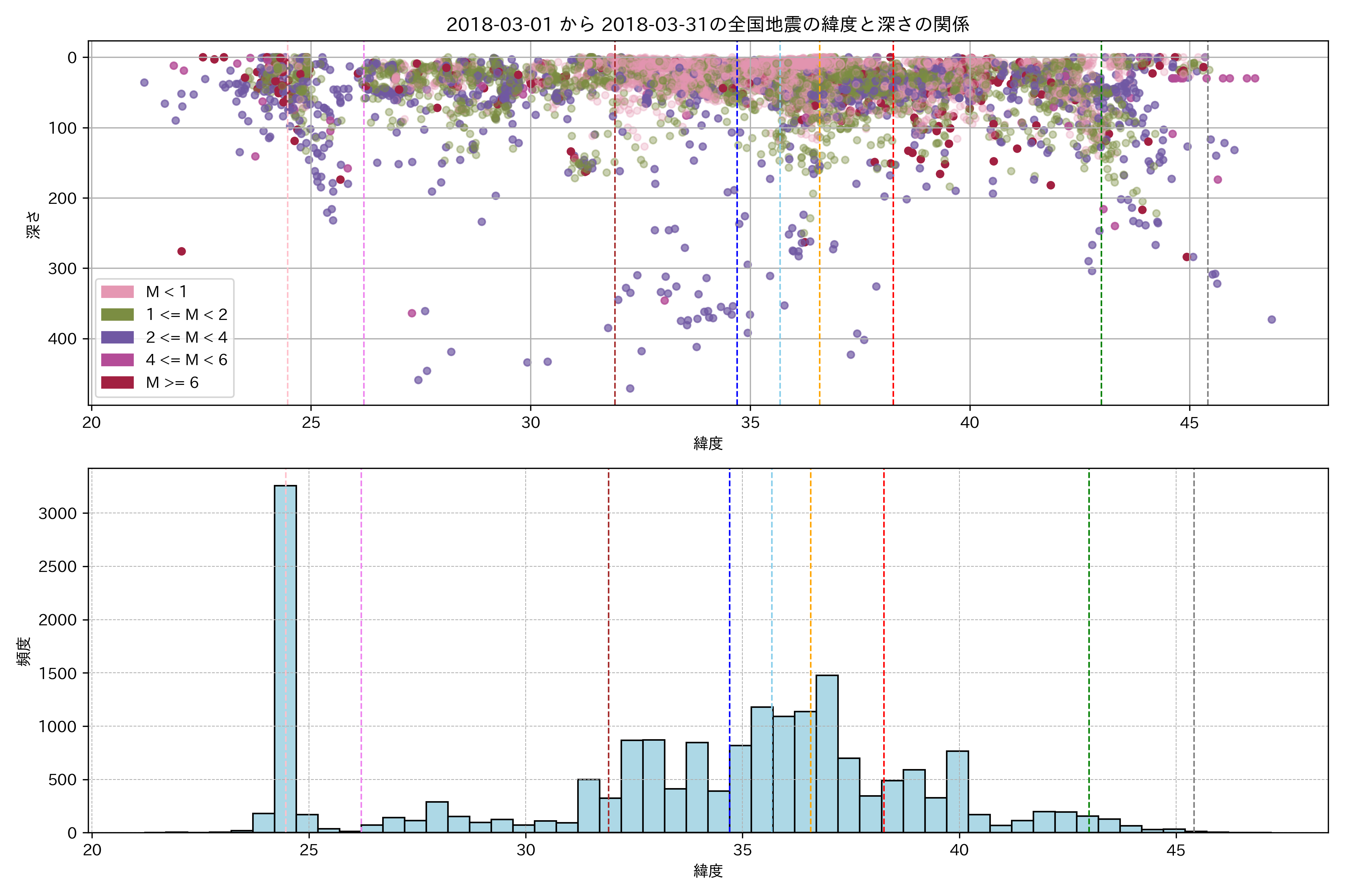 2018年3月 マグニチュード 0 以上震源マップ