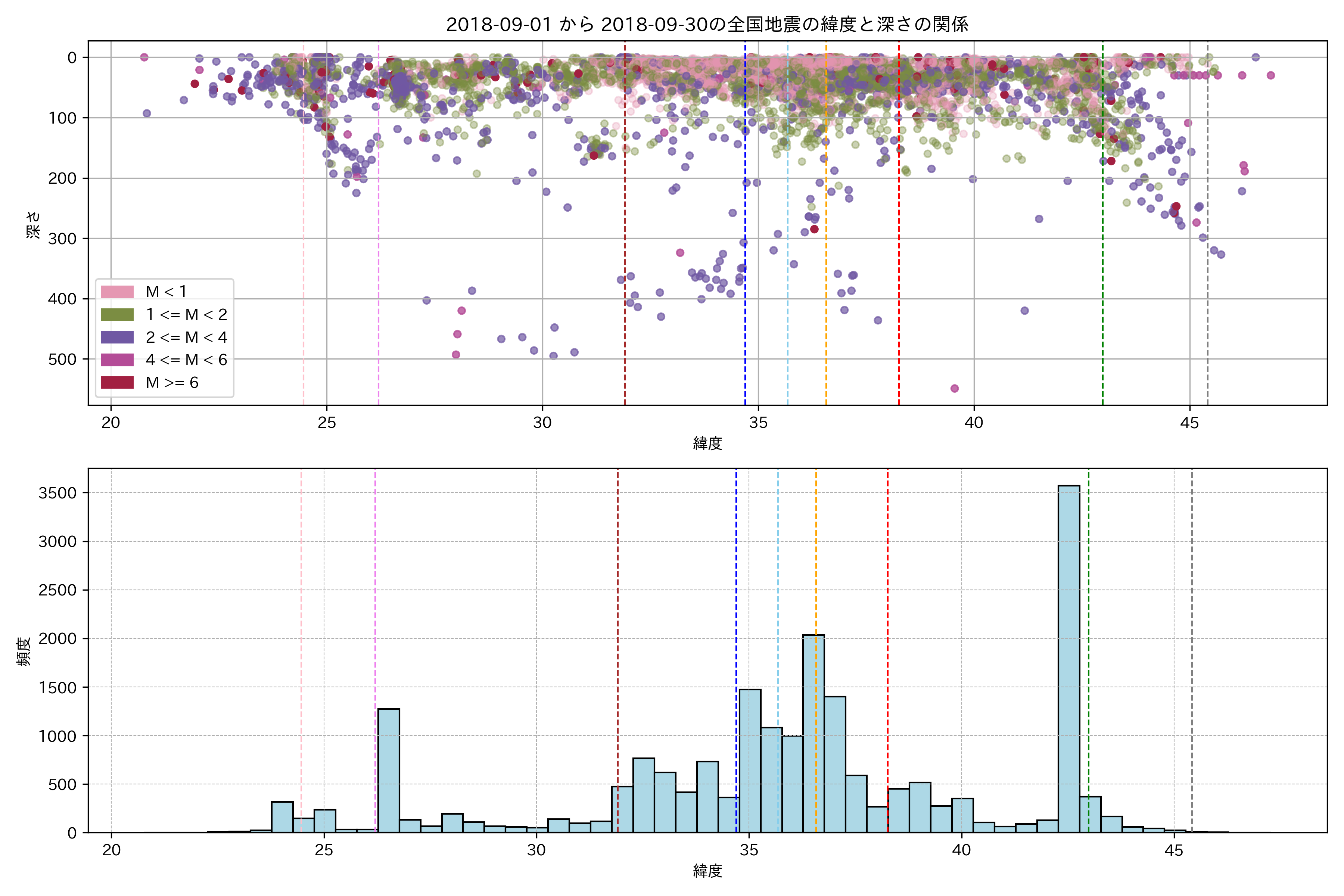 2018年9月 マグニチュード 0 以上震源マップ