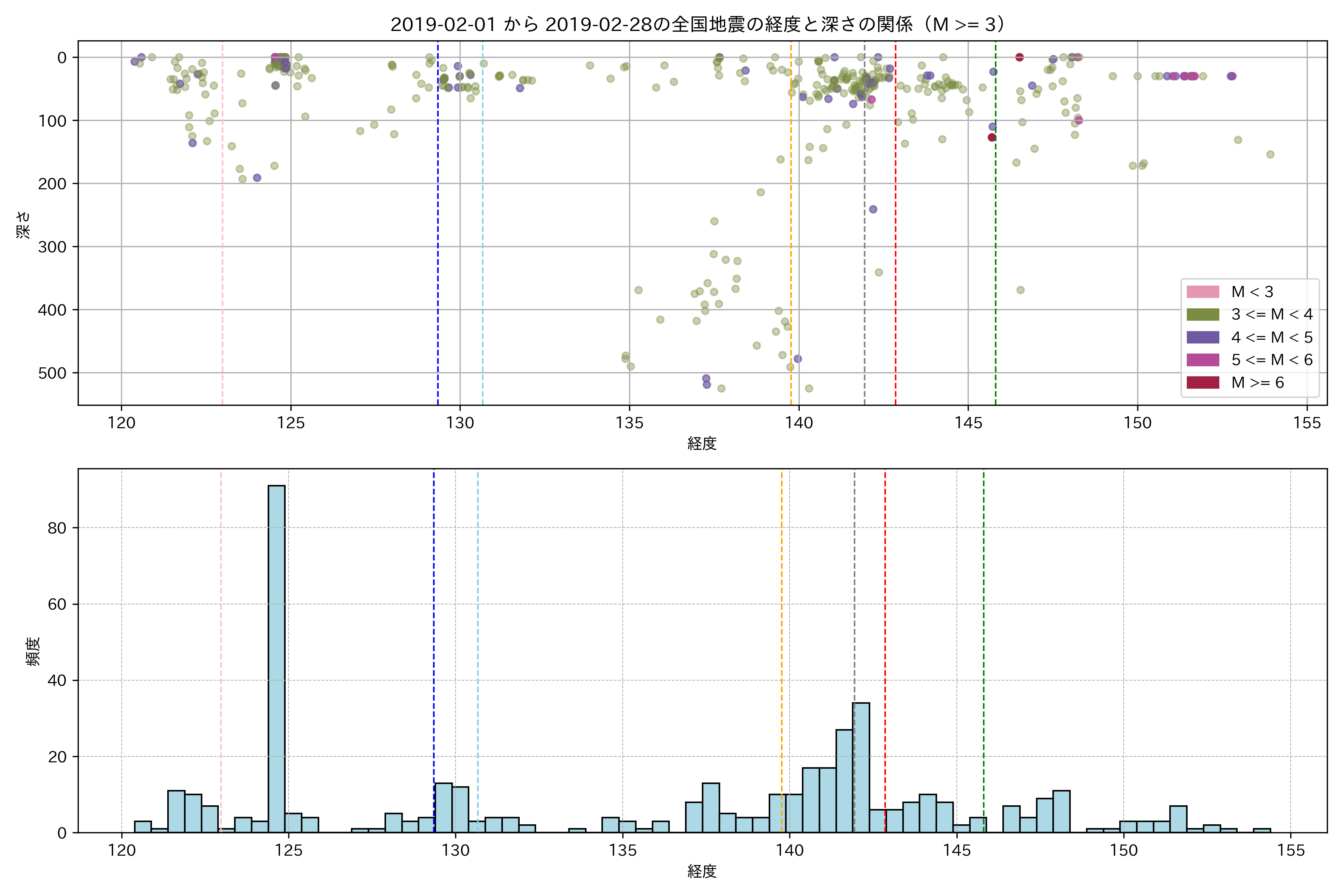 2019年2月 マグニチュード 3 以上震源マップ