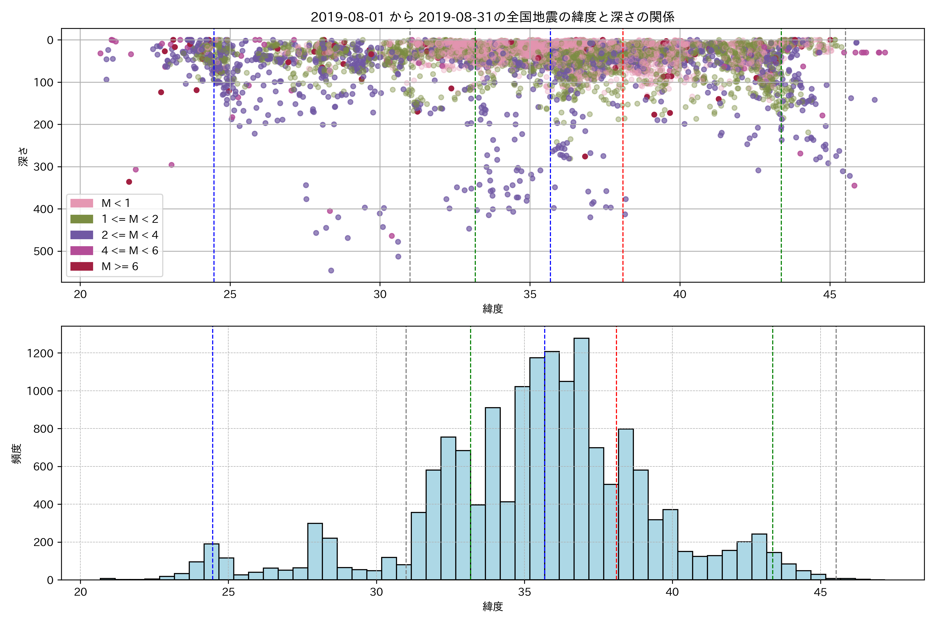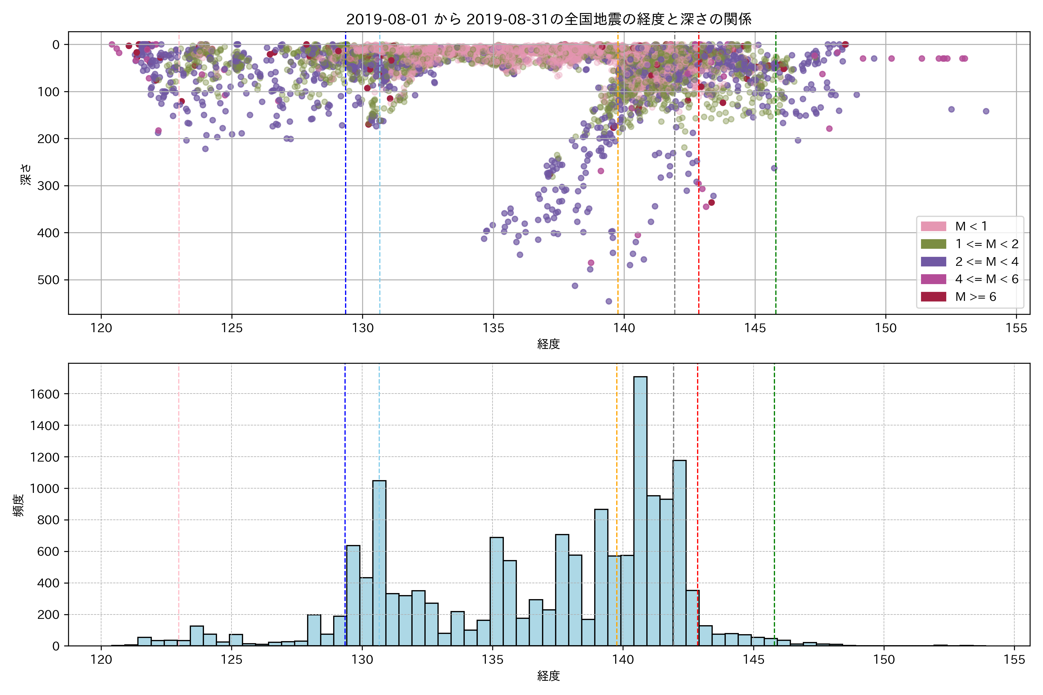 2019年8月 マグニチュード 0 以上震源マップ