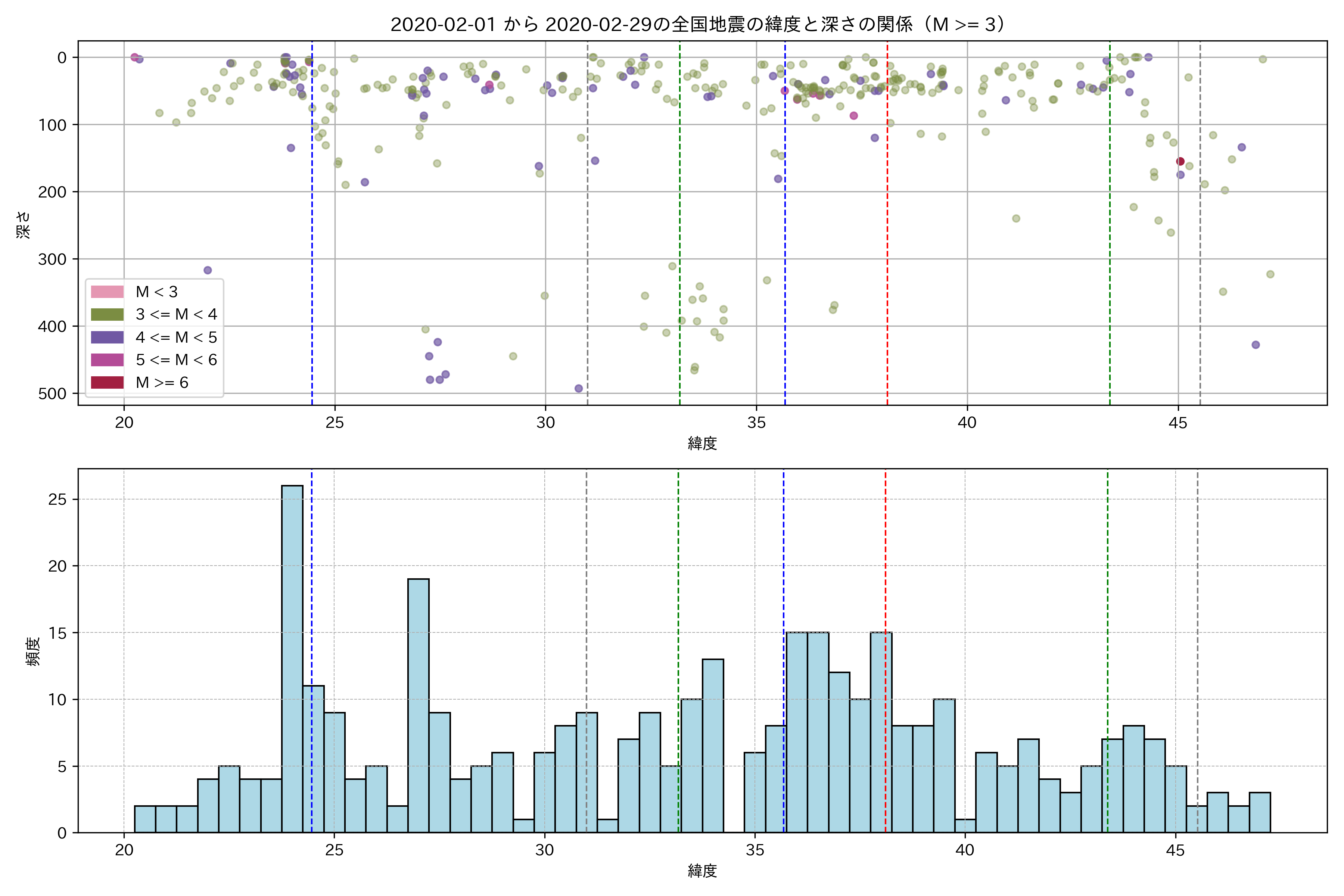 2020年2月 マグニチュード 3 以上震源マップ