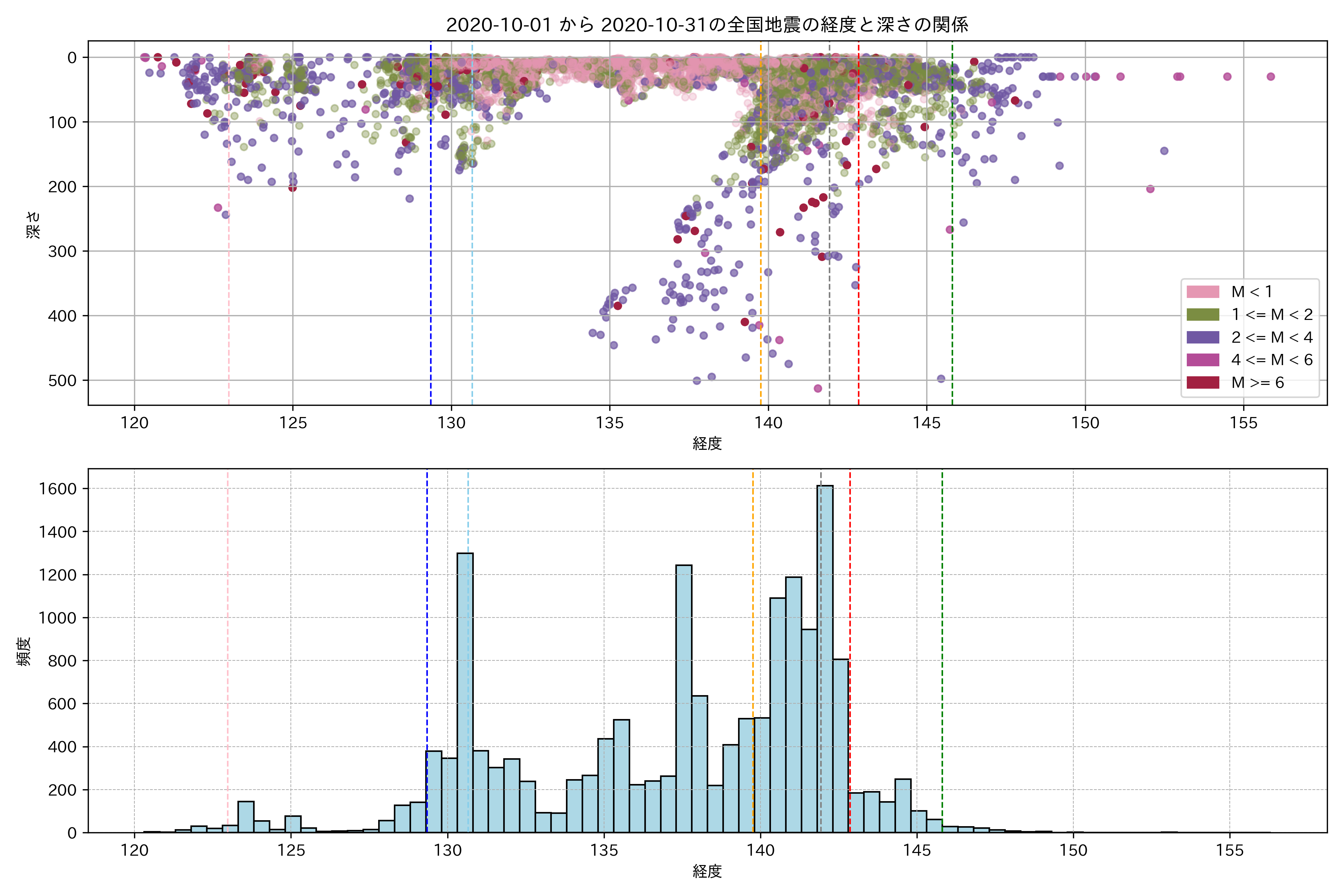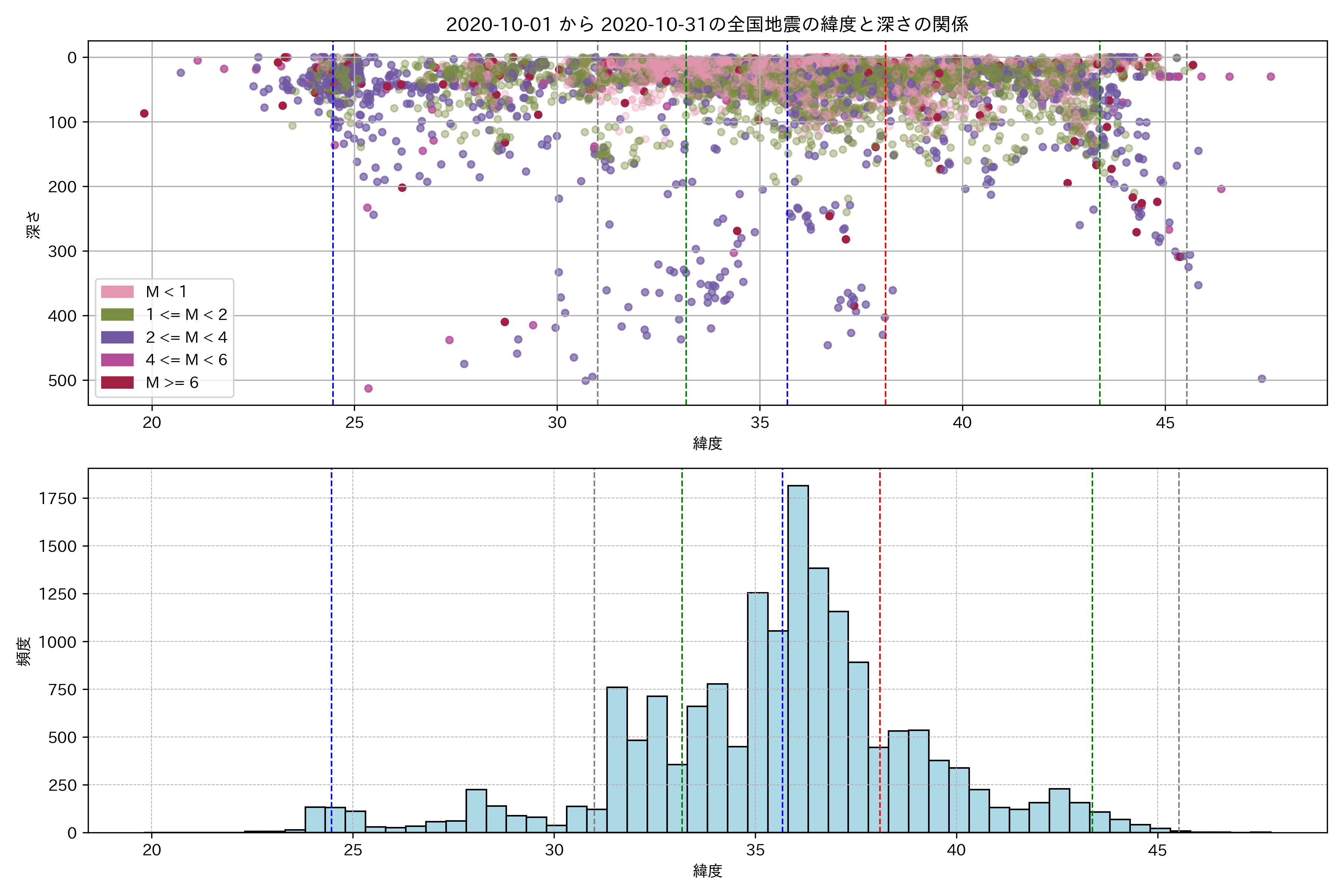 2020年10月 マグニチュード 0 以上震源マップ