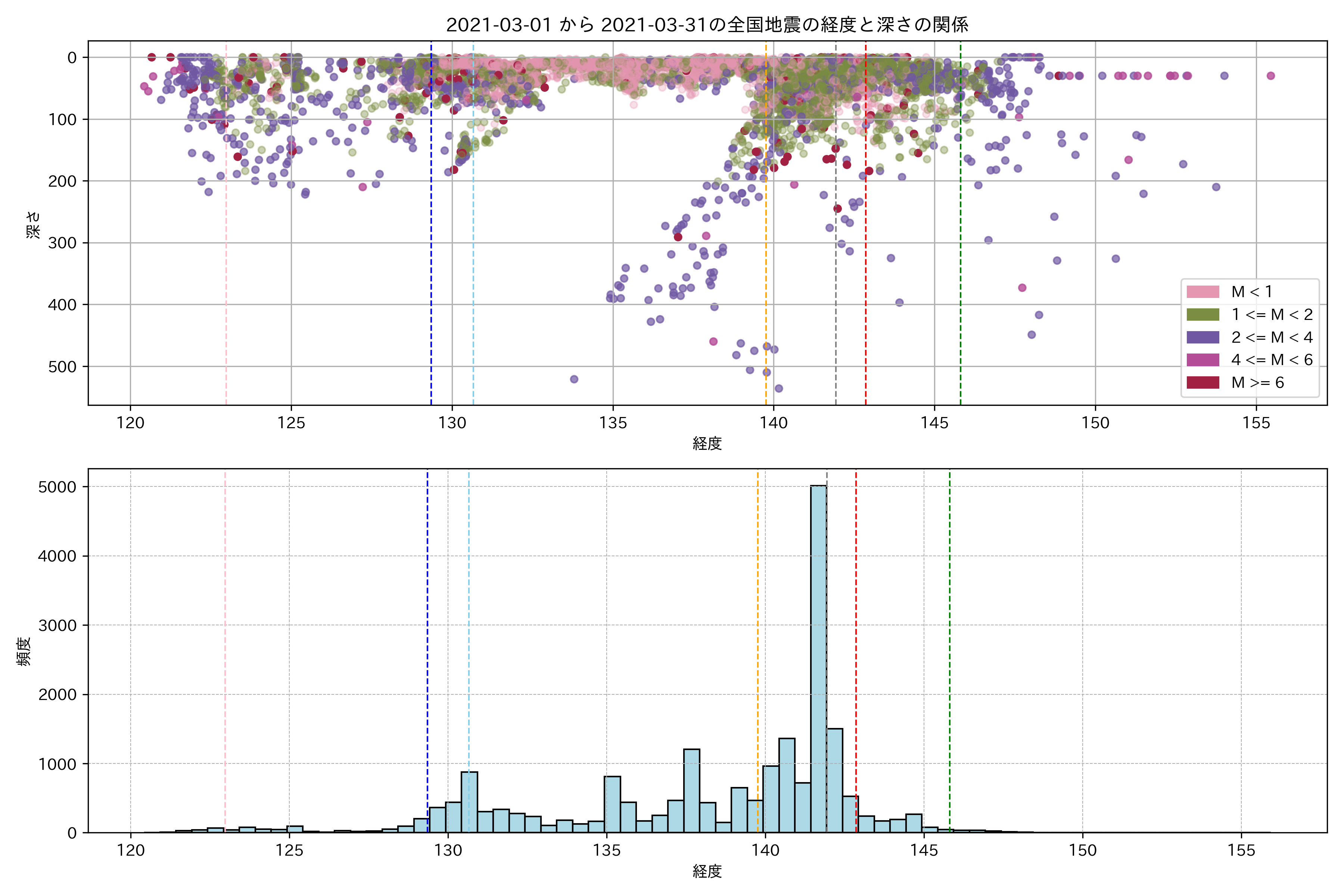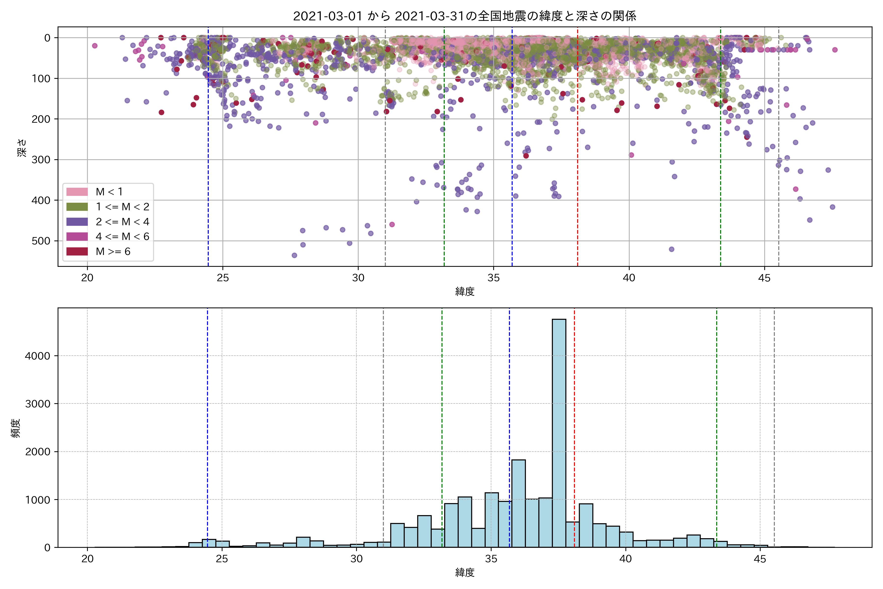 2021年3月 マグニチュード 0 以上震源マップ