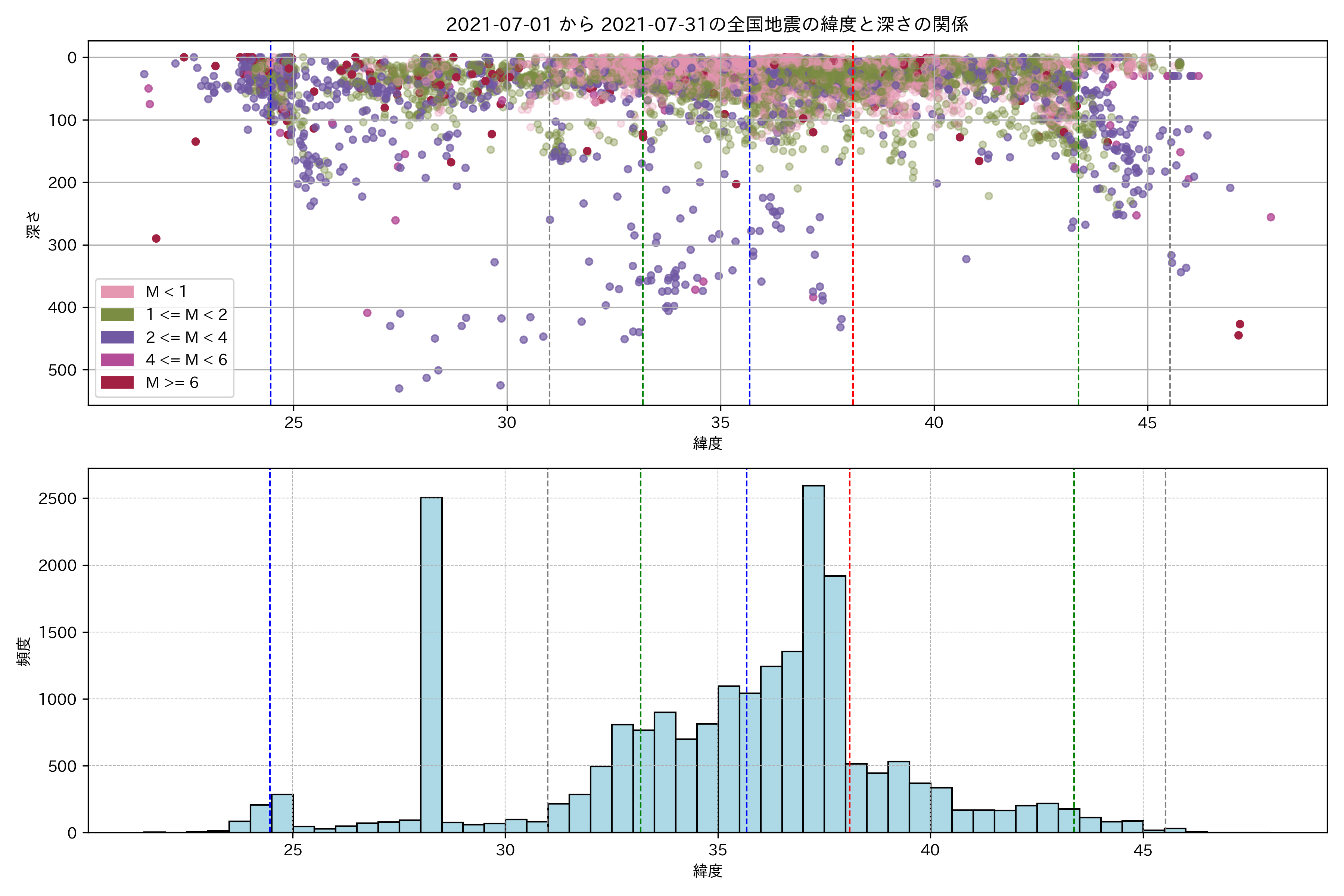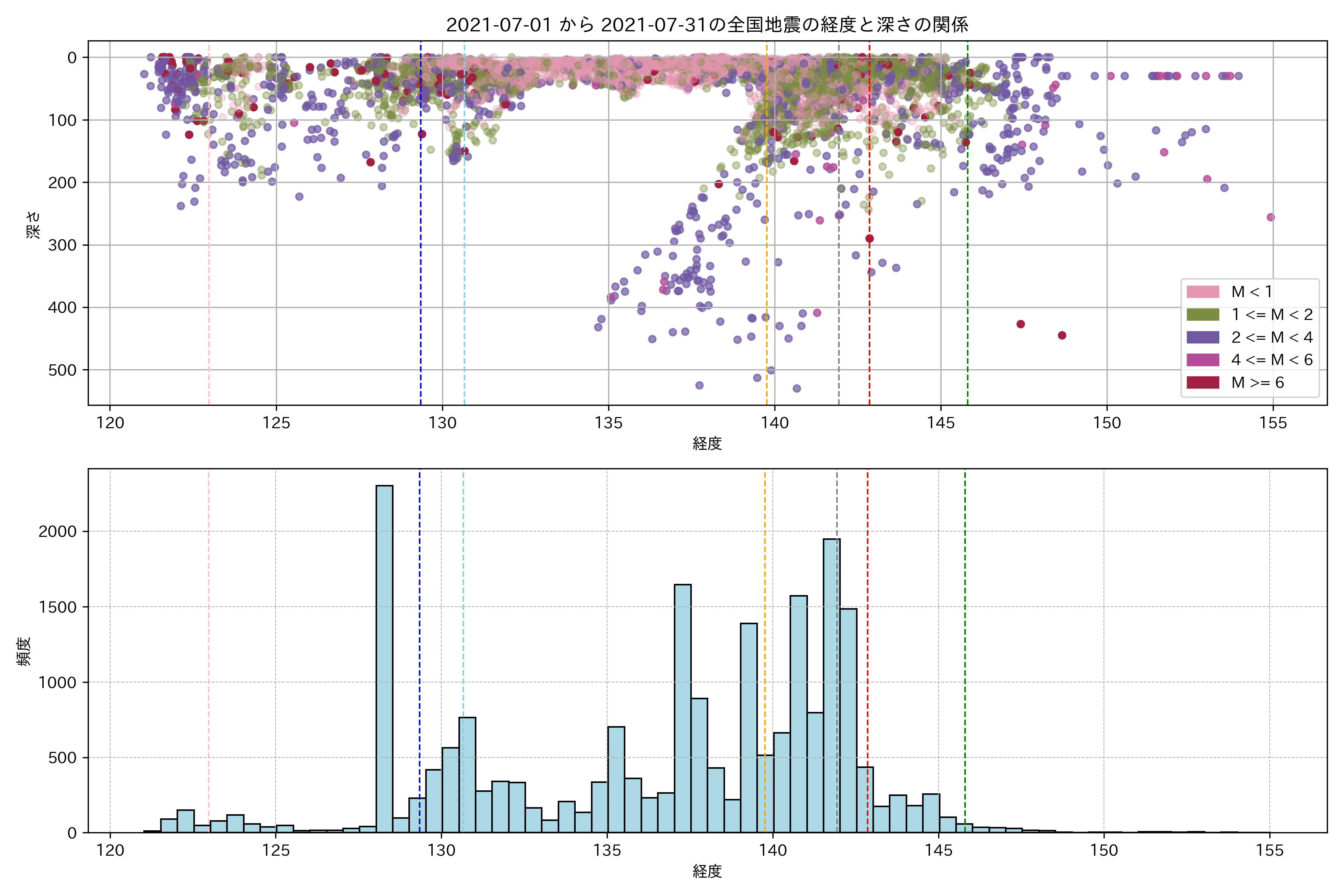 2021年7月 マグニチュード 0 以上震源マップ