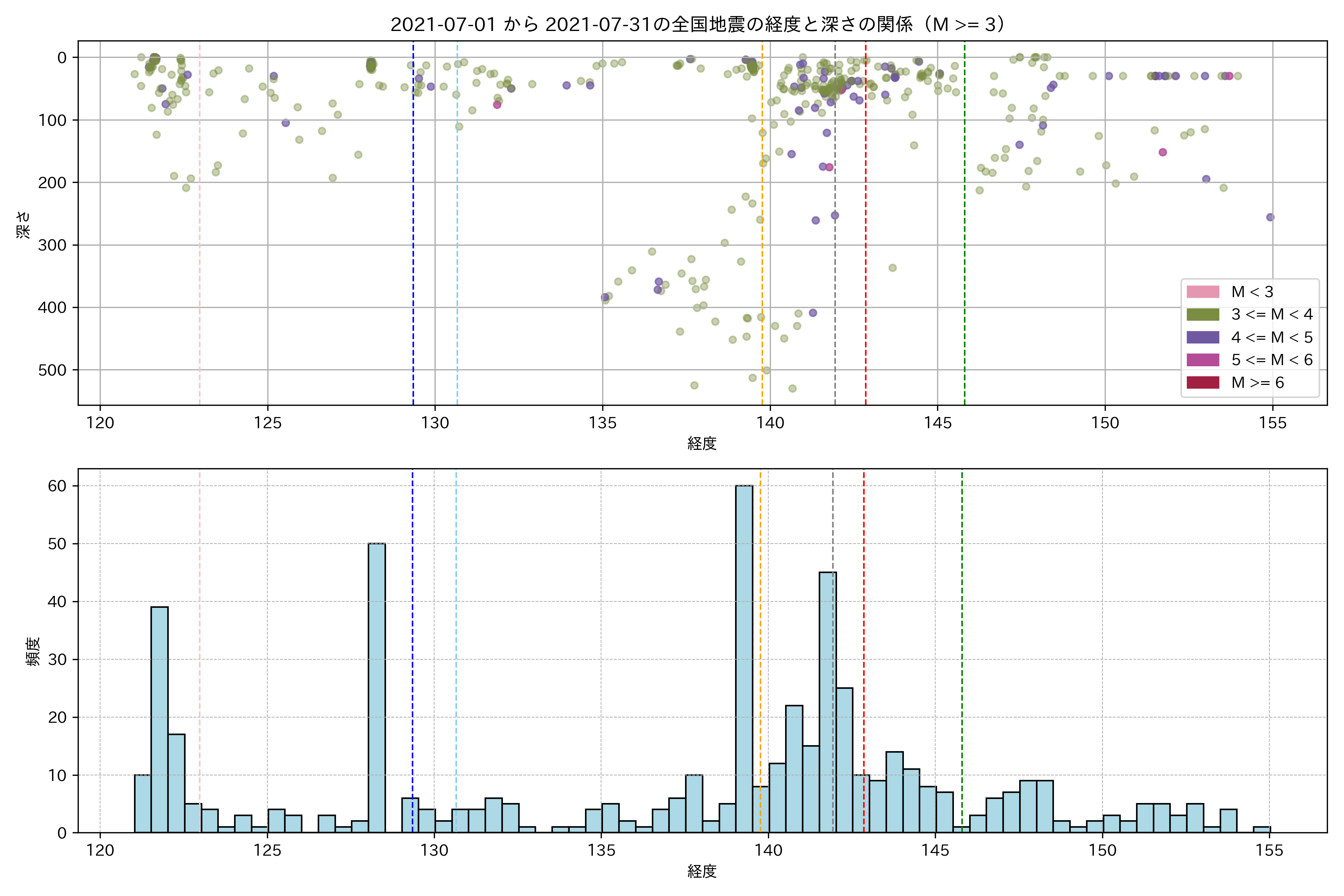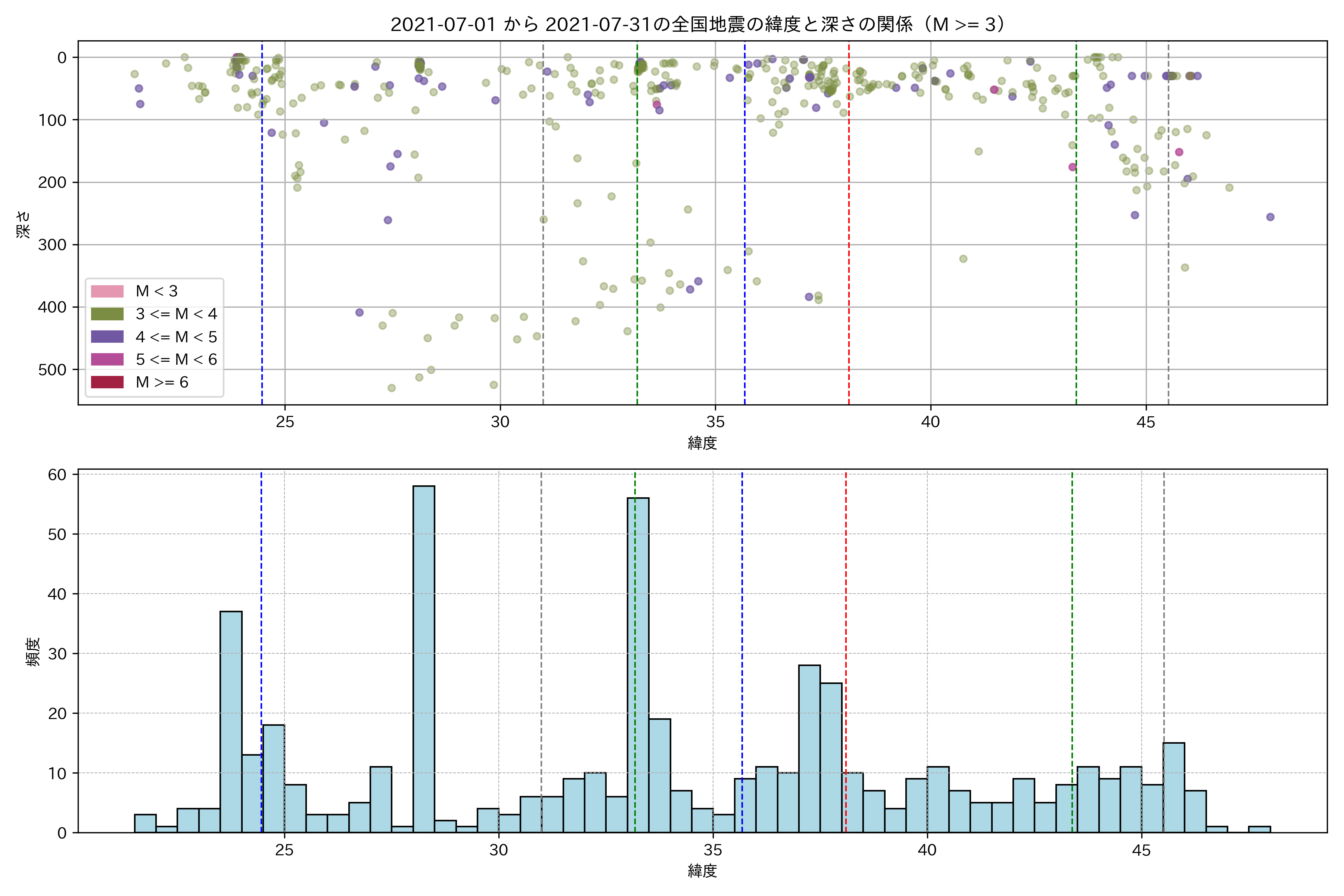 2021年7月 マグニチュード 3 以上震源マップ