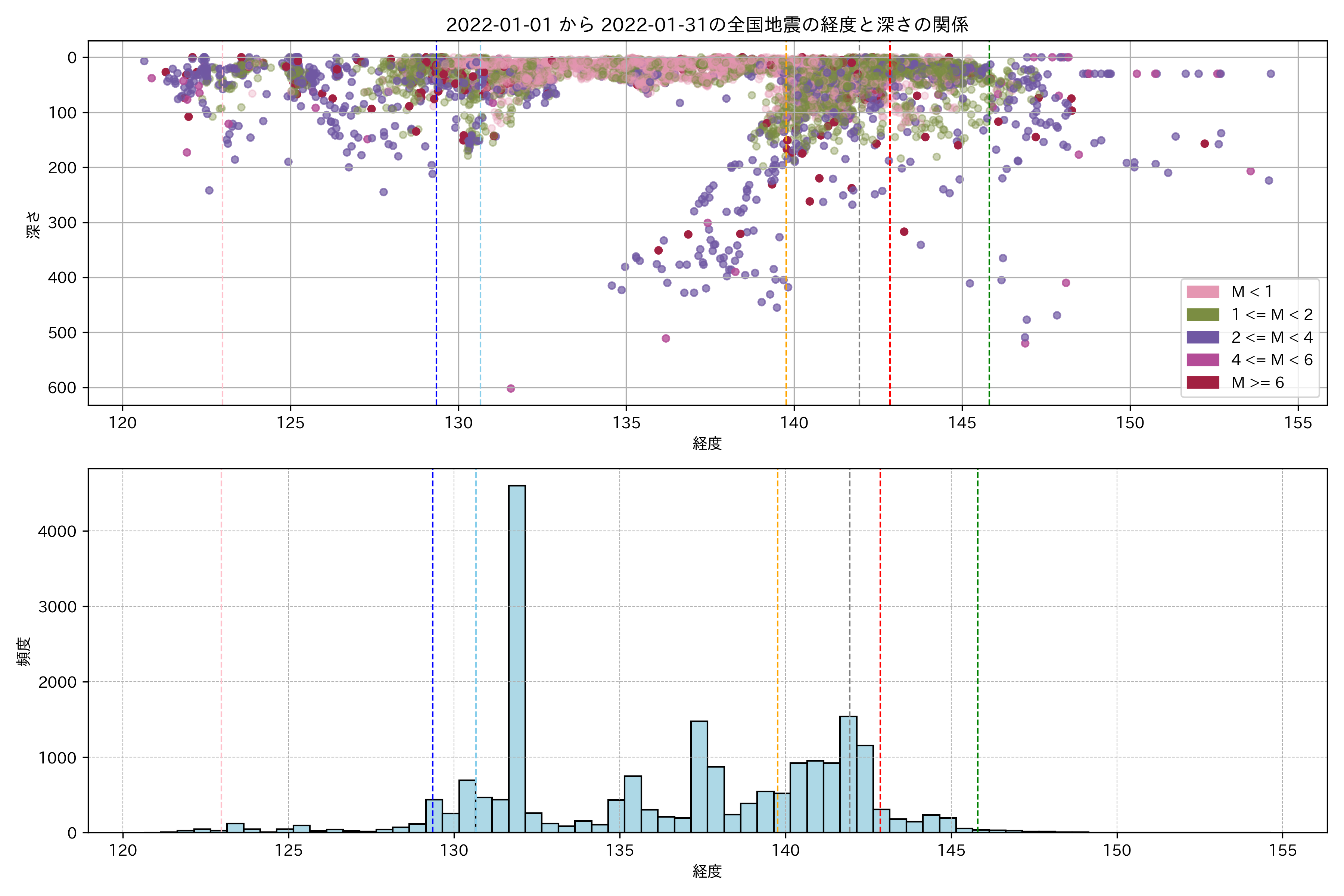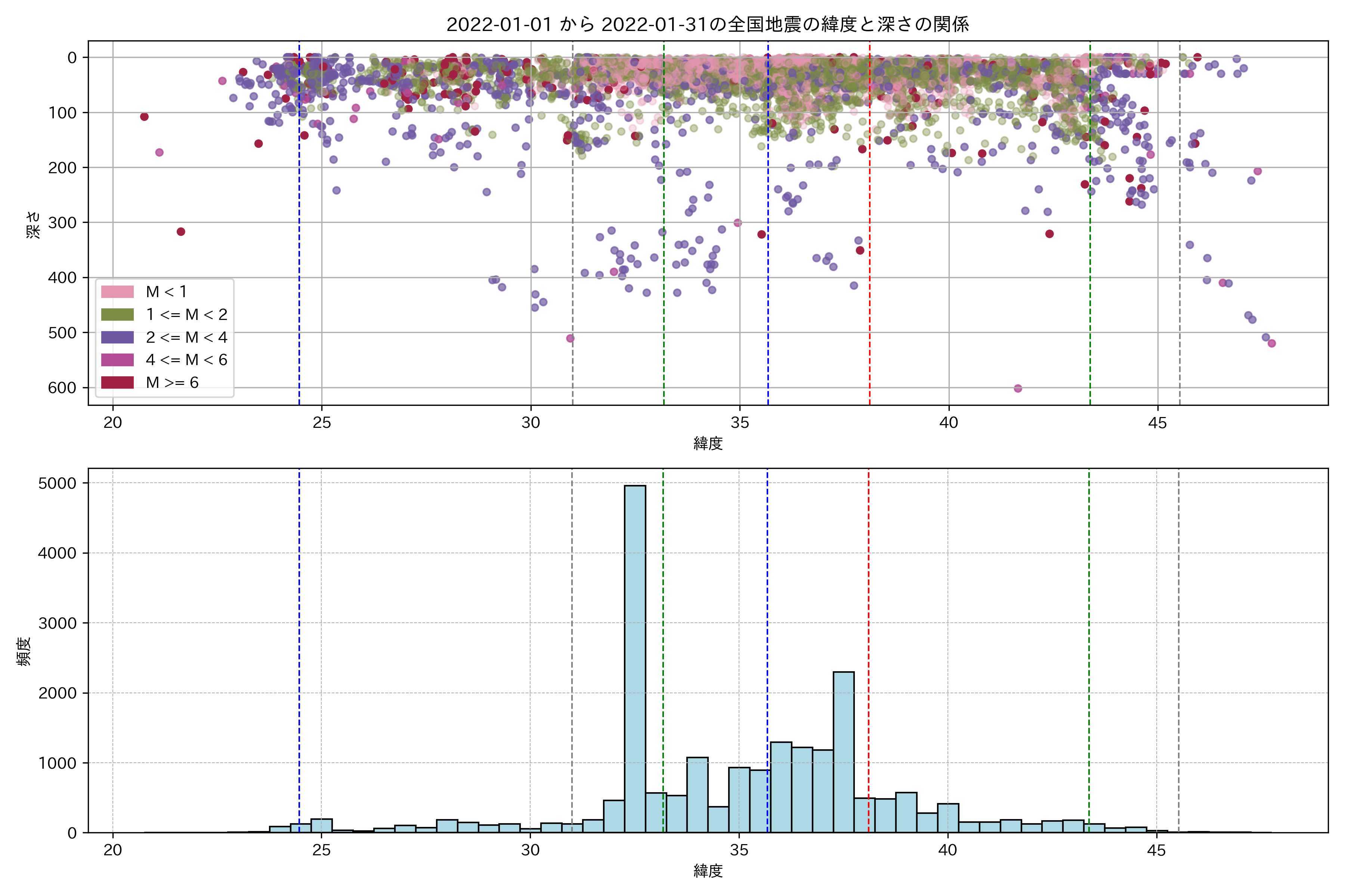 2022年1月 マグニチュード 0 以上震源マップ