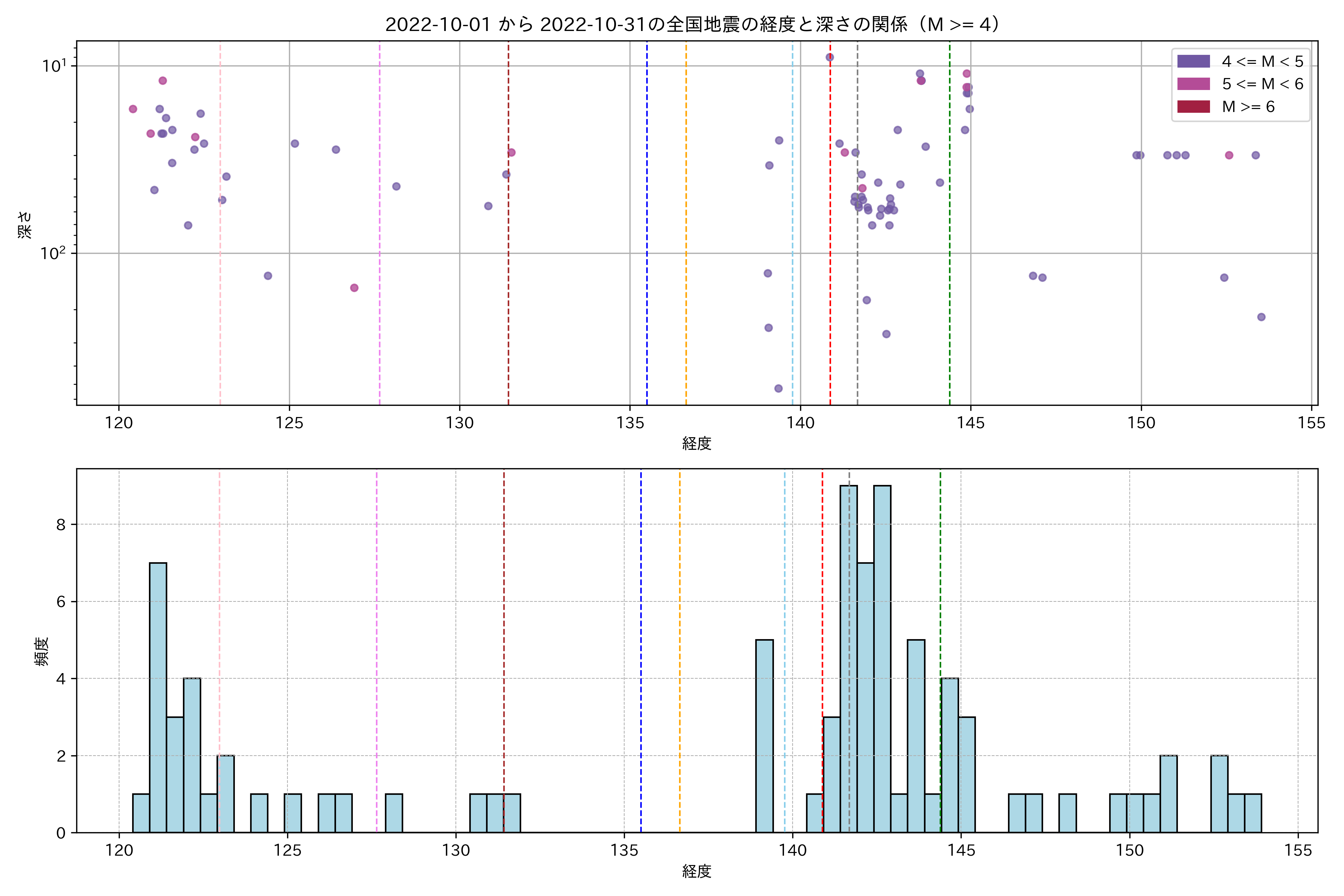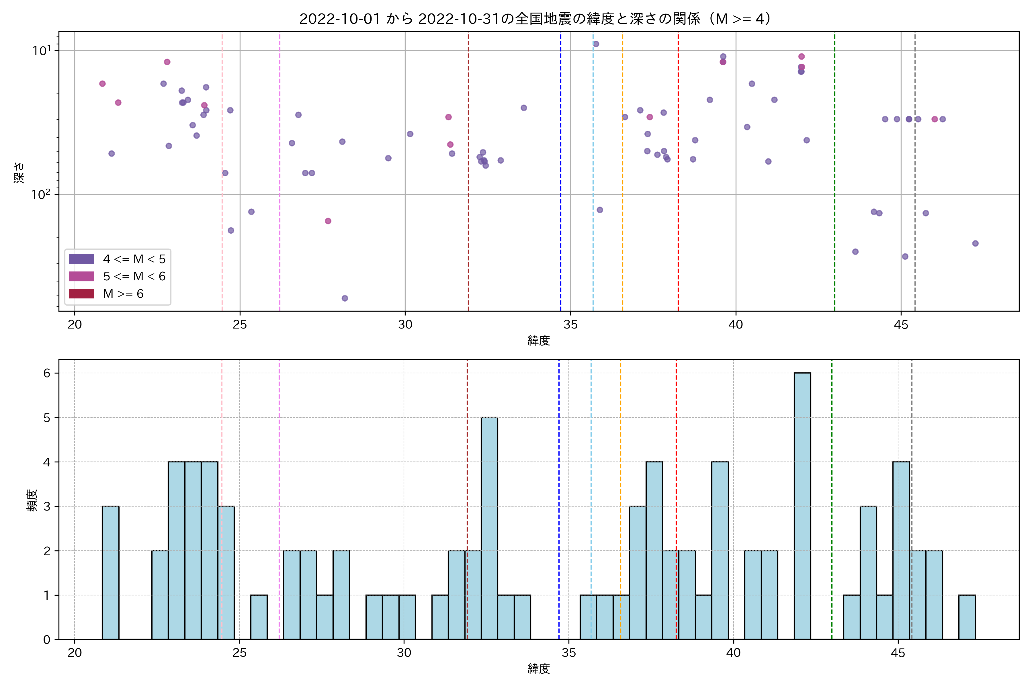 2022年10月 マグニチュード 4 以上震源マップ