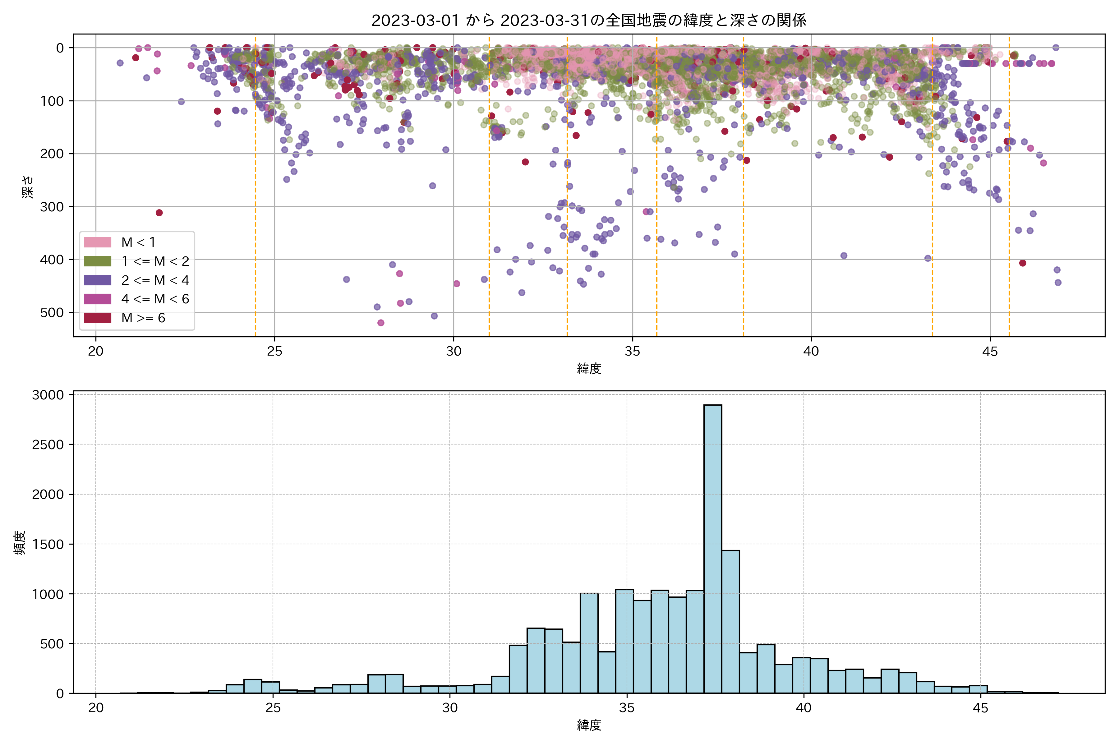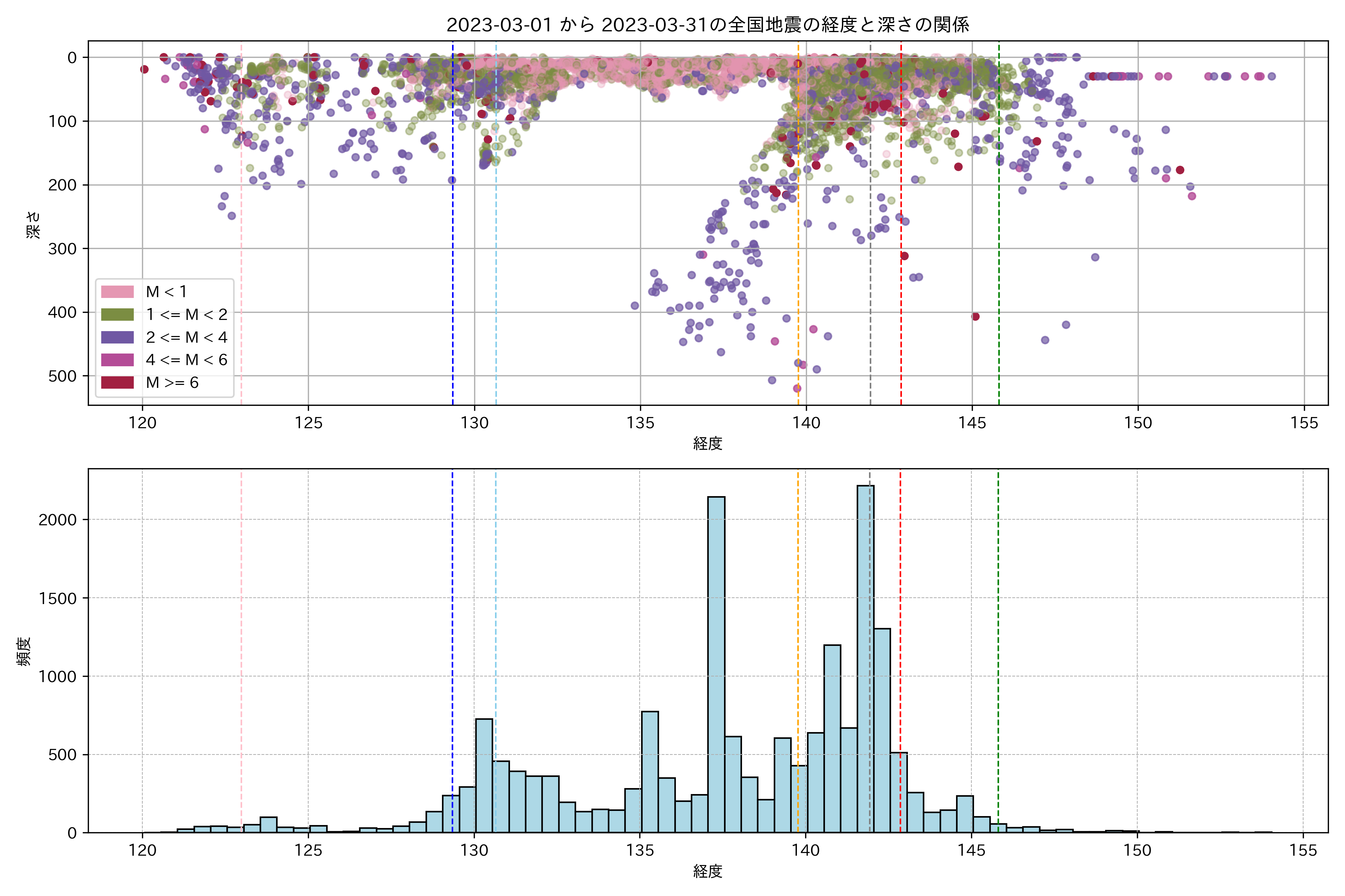2023年03月 マグニチュード 0 以上震源マップ