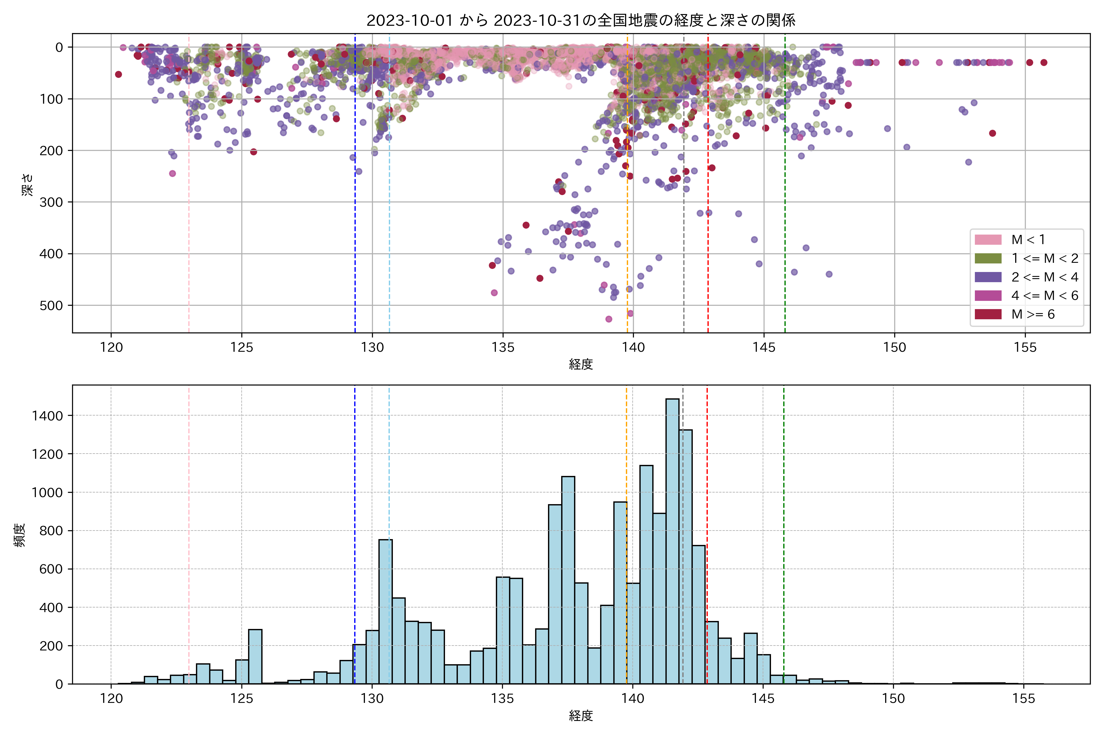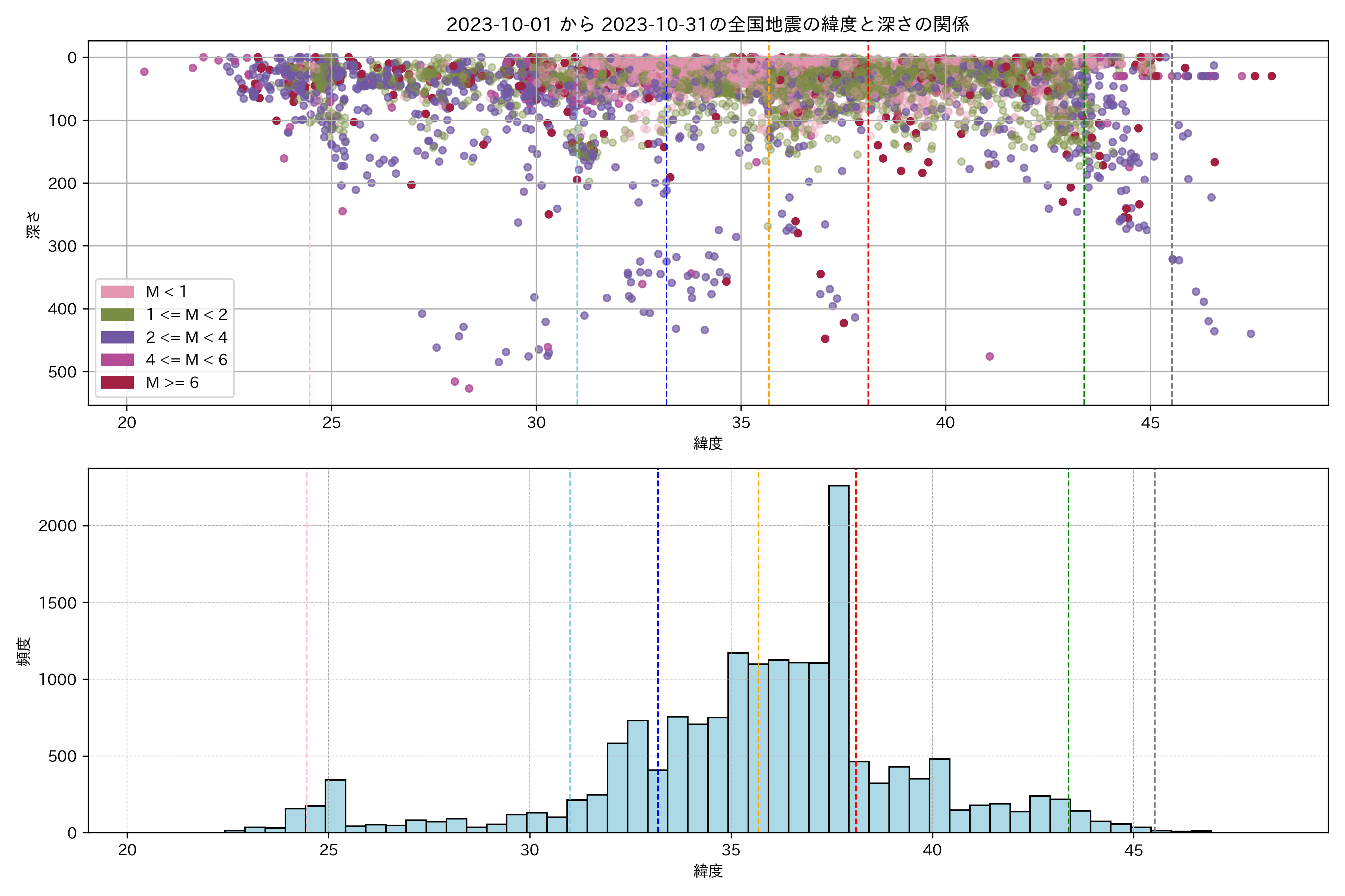 2023年10月 マグニチュード 0 以上震源マップ