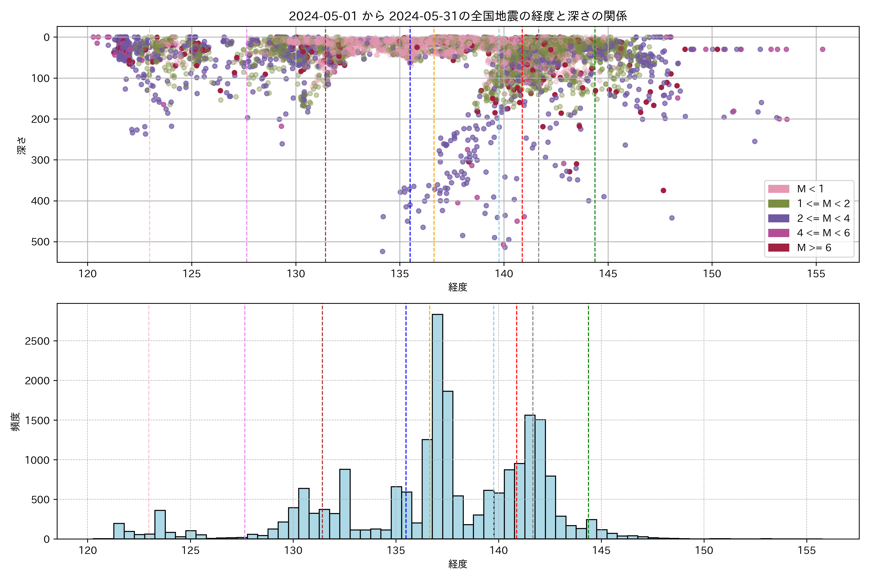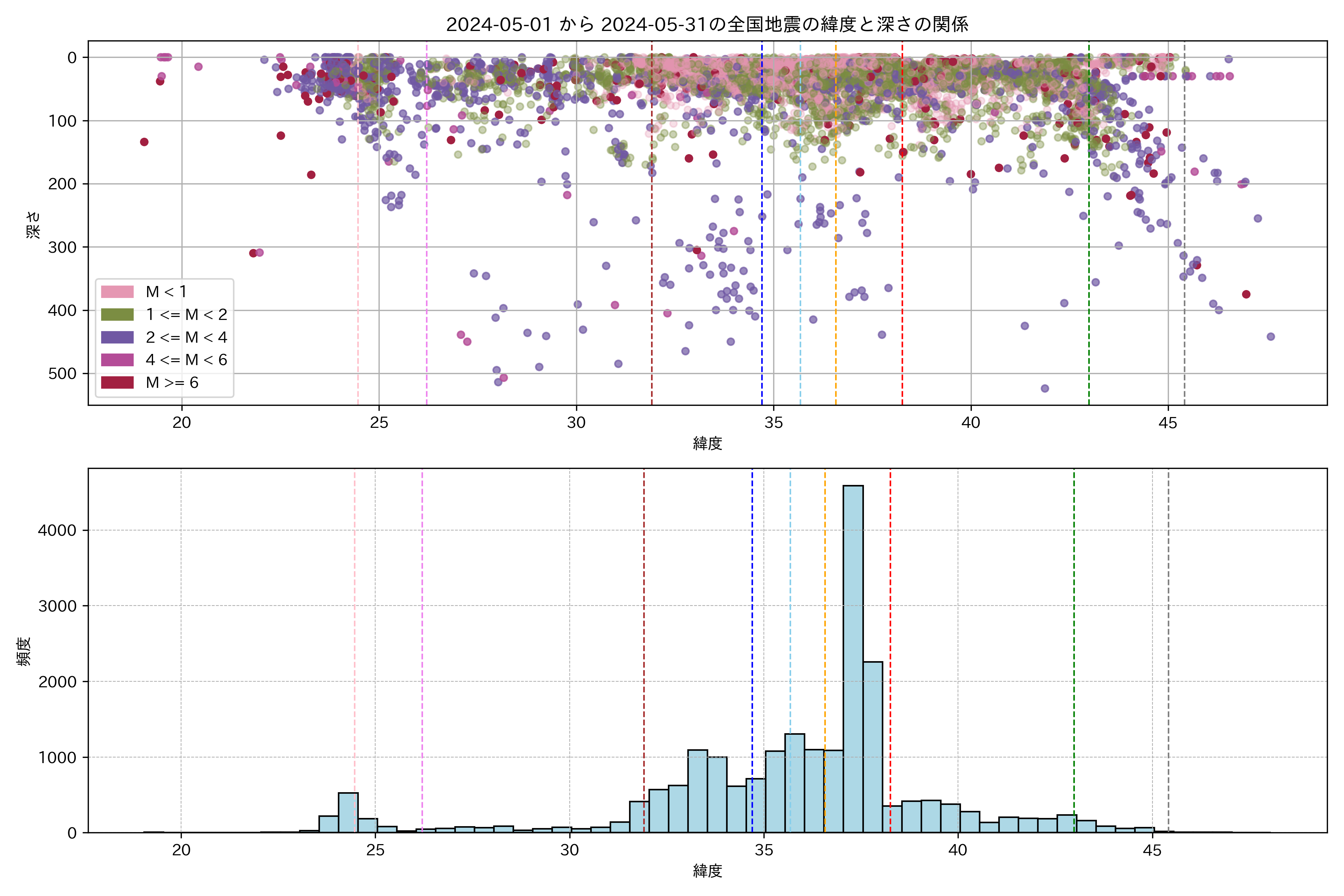2024年5月 マグニチュード 0 以上震源マップ